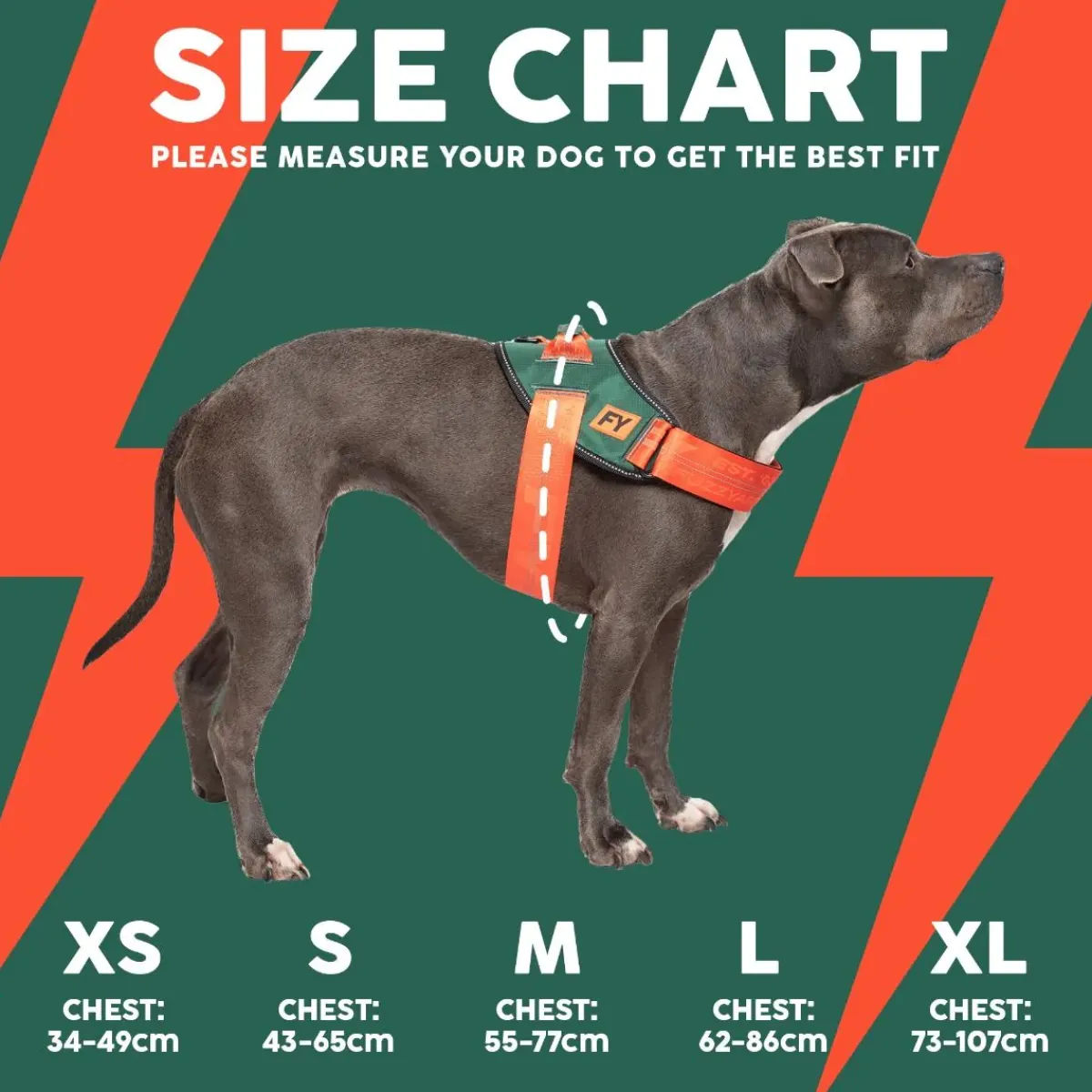 - XS: Chest: 34 – 49 cm / 13.4 – 19.3 in