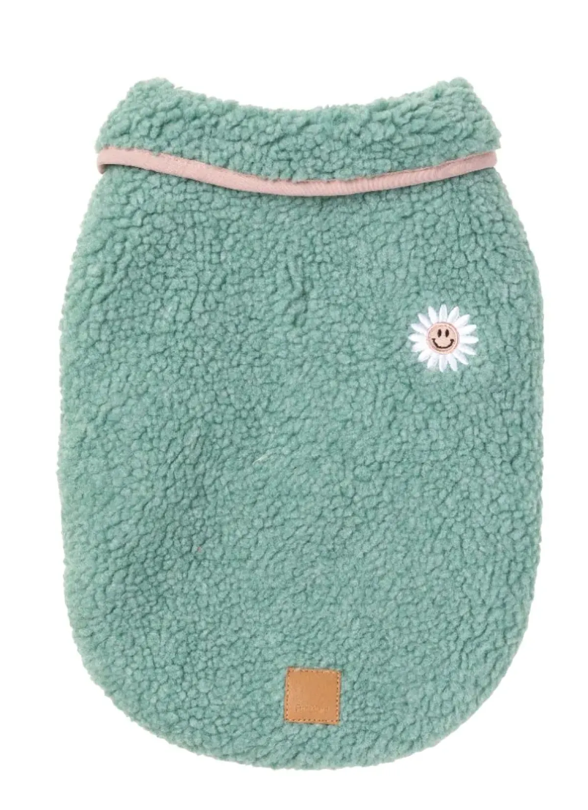 - Embroidered smiley flower on the back