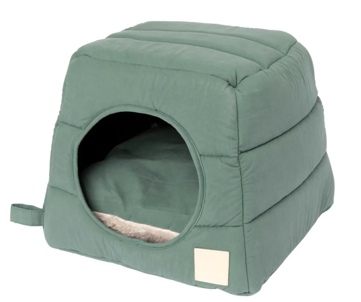 The cushion features a plush warming side that will keep your pet warm through the colder months, while the cotton reverse is ideal for summer. The soft, sturdy walls and roof offer two ways for fur babies to unwind. Keep them upright for pets that prefer their privacy during nap time or collapse them to turn the cubby into a luxurious pet bed.