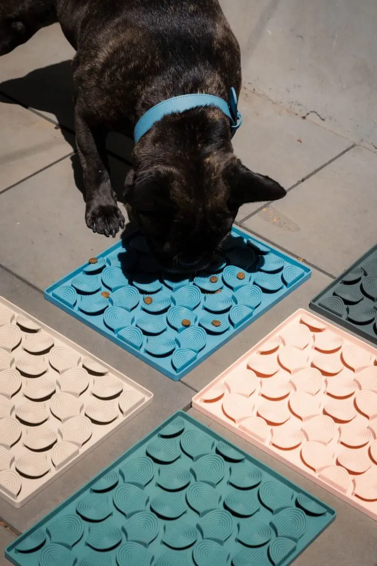 Where style meets stimulation—the FuzzYard Life Hide & Treat Mat turns treat time into an enriching experience. Designed for the curious and clever, its textured surface encourages slow feeding and foraging, keeping minds active and mealtime mess-free. Whether your pet is sniffing, searching, or pawing their way to a well-earned treat, this mat makes every moment rewarding. Simply scatter dry treats or wet food across the textured surface and watch your pet enjoy a fun challenge.