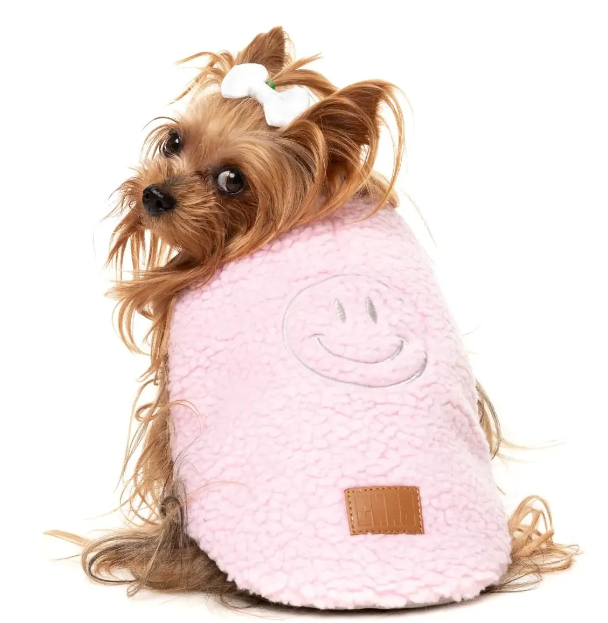 - Side One: Luxuriously thick sherpa material with an embroidered smiley face for a touch of joy