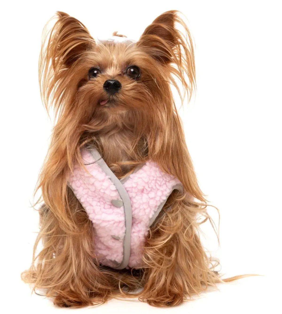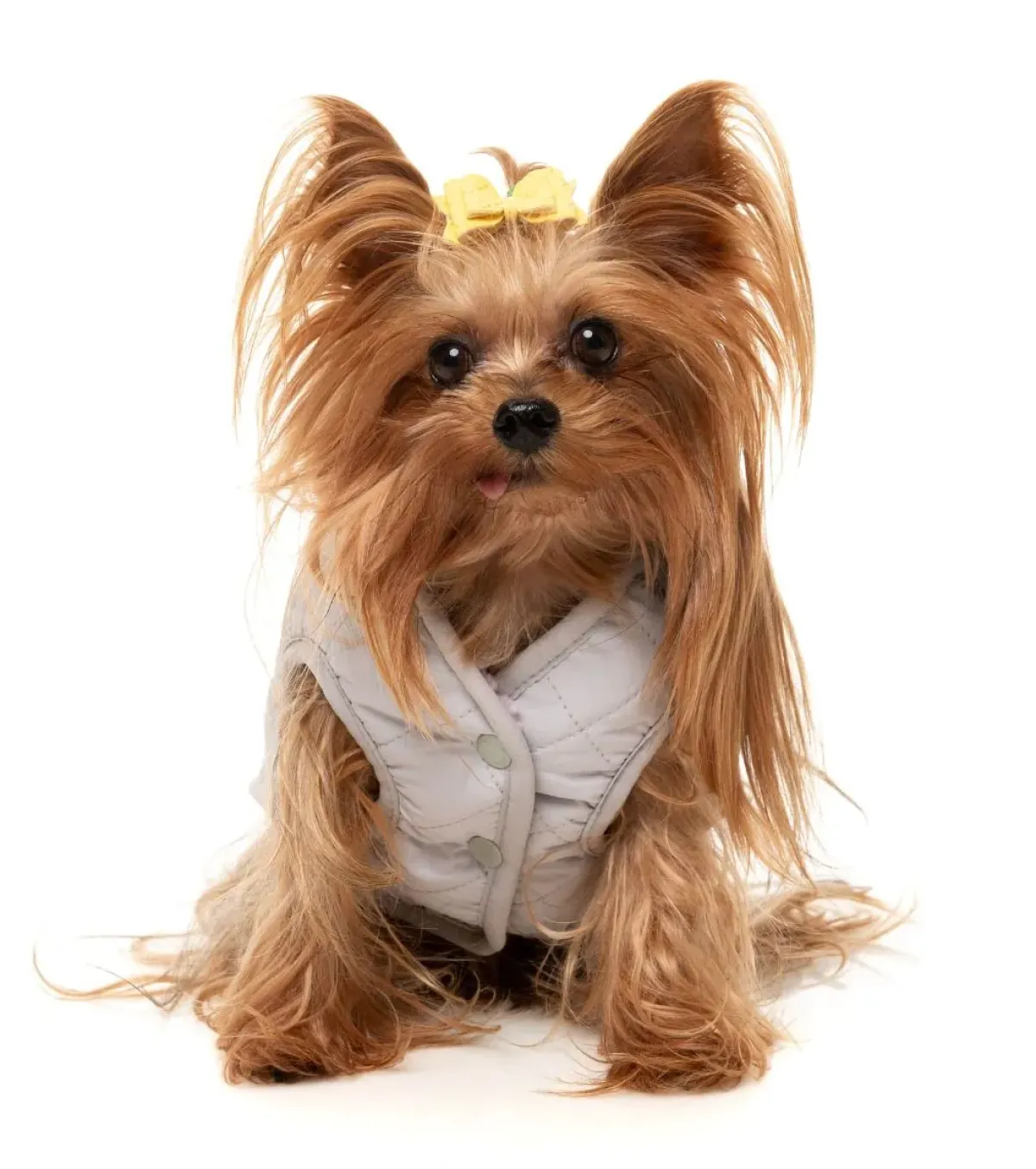 George the Yorkshire Terrier is wearing a size 2.