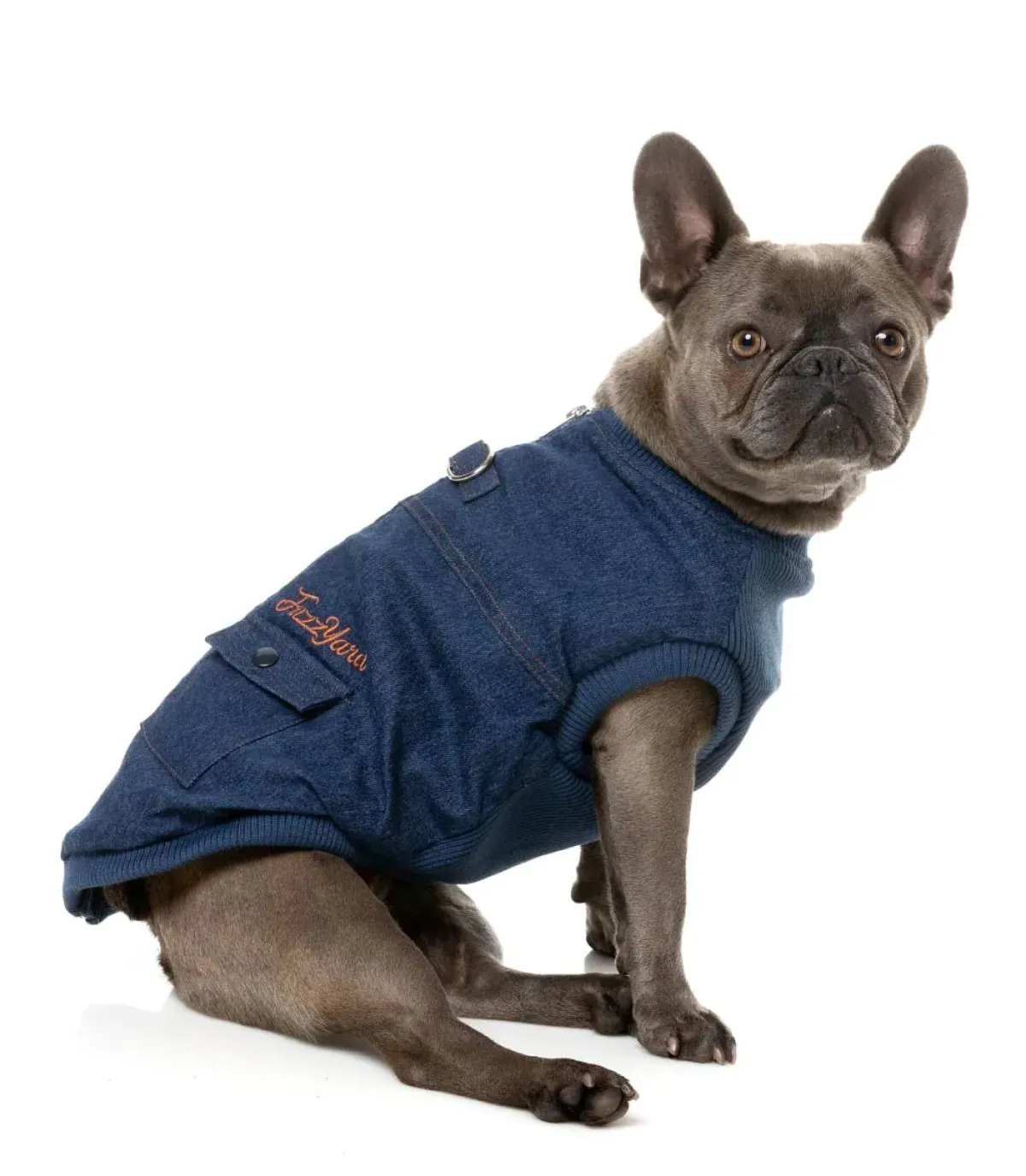 Jazz the French Bulldog is wearing a size 4.