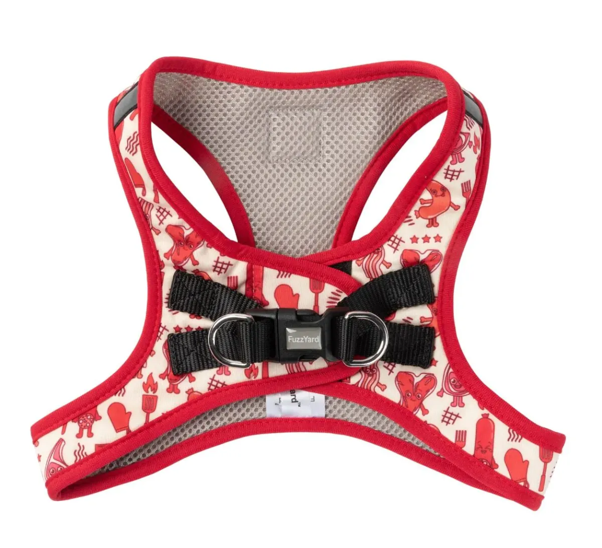 FuzzYard step in dog harnesses are the best solution for dogs who don’t like things being put over their head….or have a big head ;). They are lightweight super comfortable and, best of all, easy to fit! Simply unclip the buckle, undo the velcro and let your dog ‘step in’ and you’re good to go!