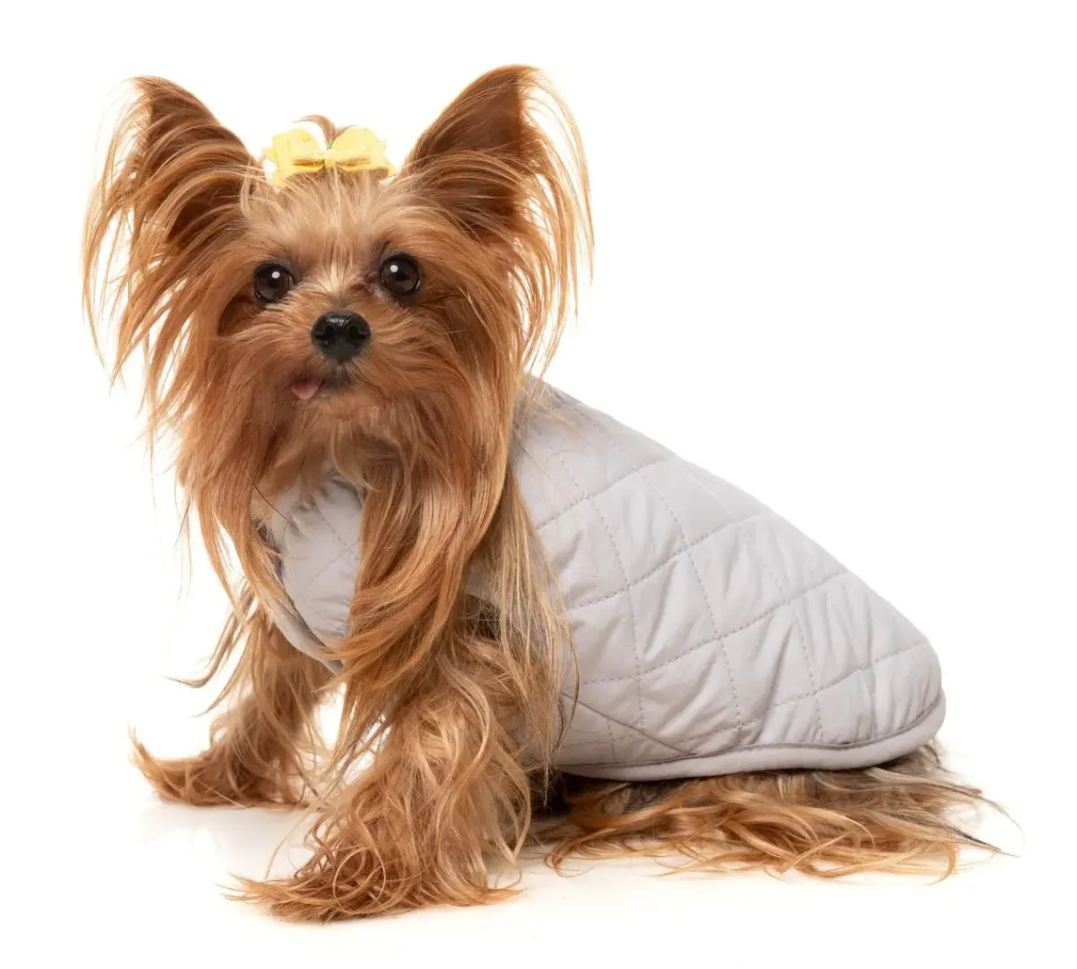 George the Yorkshire Terrier is wearing a size 2.