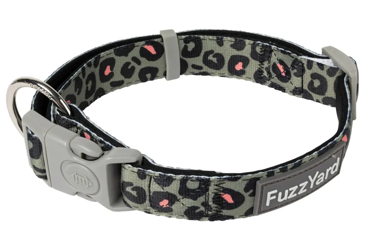 FuzzYard adjustable collars feature a sturdy die-cast attachment ring, fast opening plastic buckle with an additional saftey lock feature and thick cushioned webbing for durability and the most comfortable fit for your dog. This spongy neoprene collar is lightweight, won’t rub on your dog’s fur and is quick-drying.